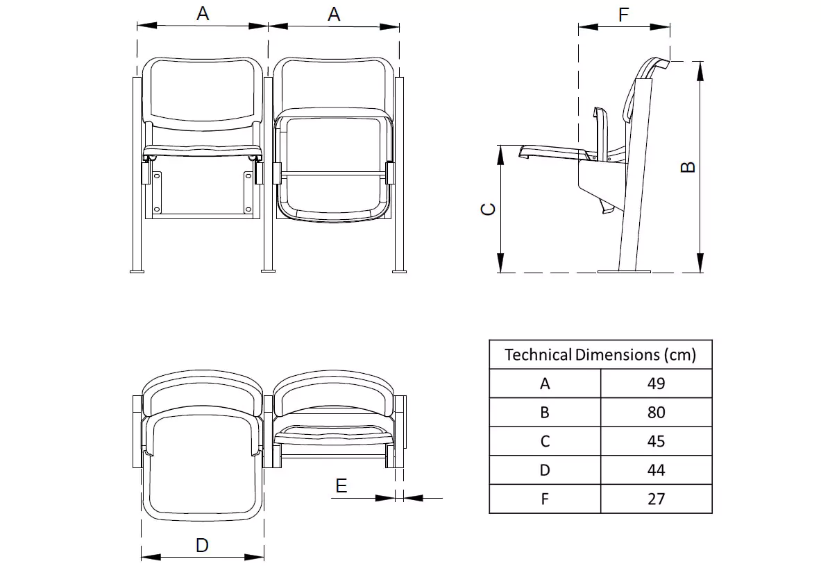 Featuring reinforced joints and a silent folding mechanism, this seat is tailored for modern stadium demands. The sleek plastic finish adds a contemporary look while supporting extended use. It performs well in both indoor and outdoor environments.